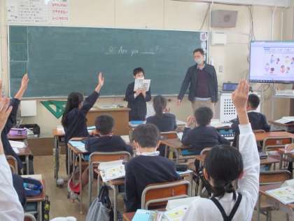 金曜日の外国語活動は去年に引き続き、ラフィ先生に授業をしてもらっています。教科書を使って、聞き取る練習、リズムに合わせて話す練習、みんなでゲーム…いろいろな活動がありました。集中して取り組み、外国語も得意になっていきましょう。5年生から外国語もテストがあります。がんばってね!!