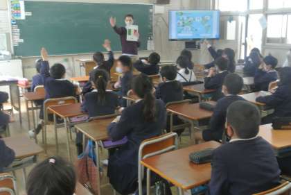 4年生の外国語学習のスタートは、ラフィ先生の授業です。