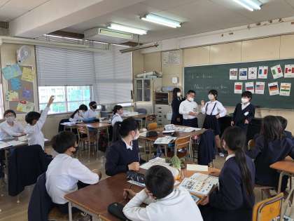 外国語の時間では、自分の出身地を紹介できるように練習しました。各国の動物を使って、それぞれの出身地を紹介したり、クイズを出し合ったりしながら、楽しく学習していました。