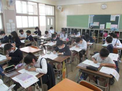 合同な図形を書く学習をしました。3つの書き方を練習しました。コンパス・分度器を使って上手にかけている子が多かったです。