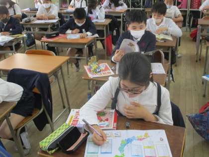 都道府県のテストをしました。4年生の時に必死に覚えた都道府県ですが、忘れている子もたくさんいました。場所も難しい漢字も書けることを目標に勉強し直してほしいと思います。もちろん満点の子もいました!!素晴らしいですね。