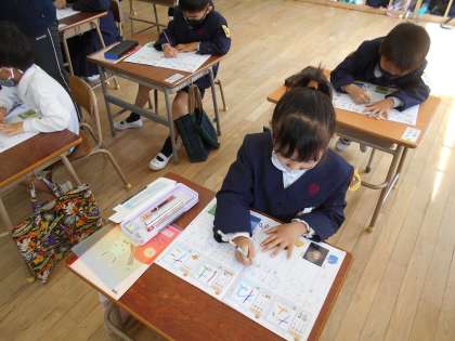 今日は「ね」と「な」を学習しました。書き終わりの丸くなっているむすびの部分があるひらがなでしたが、ゆっくり書くことで上手に書けていました。