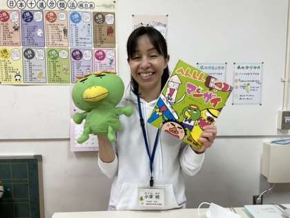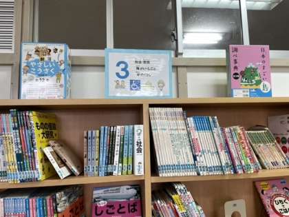 本の整理や図書館の掲示、水曜日の図書の時間に本の読み聞かせなど学校図書館に関する仕事をたくさんしていただいています。