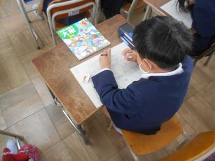 今回は、校区内に何があるのかを地図に書いていきました。特に、みんなが利用する施設の場所をを思いだしながら書いていきました。