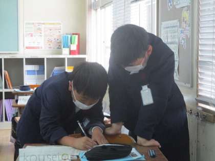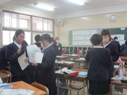 好きなものをたずねる練習をしました。好きと答えた友だちを見つけたら、友だちの名前を書きます。最後に先生の好きなものを、みんなでたずねました。いろいろな場面でたずねる練習をし、自然と言葉を覚えていたように思います。先生の好きなものを当てるときは大盛り上がりでした。