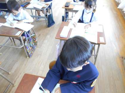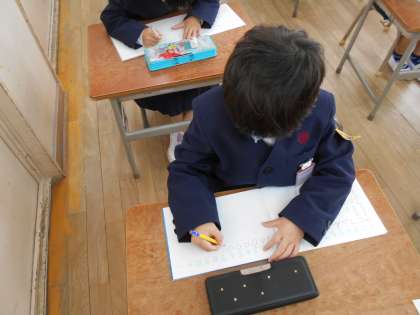 算数の時間に初めてノートを使いました。横に長いノートなので、国語のノートと違ってびっくりしていましたが、したじきをいれて1〜10の数を書きました。枠からはみ出ないように書きました。これからノートを使って学習していきます。
