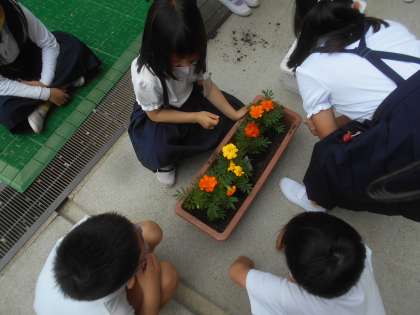 今回の理科の授業では、マリーゴールドとホウセンカのたねの観察をしました。はじめにマリーゴールドとホウセンカの花を見てから、種をかいていきました。種の形や色の違うところに気を付けながら描いていきました。