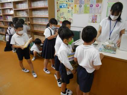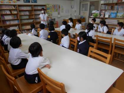 図書室へ本を読みに行きました。席に座り、図書館支援員さんの話を聞き、本のかりる方法知りました。たくさん本があるので、どの本にしようか迷っていましたが、1冊かりました。家で読む人は本を持って帰っています。来週までかりることができます。