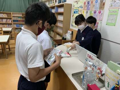 図書室にあるたくさんの本の中から興味がある本や読みたい本を選んでいます。一人ひとり時間を見つけて読むことができています。できるだけたくさんの本を読みましょう!!