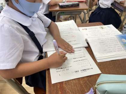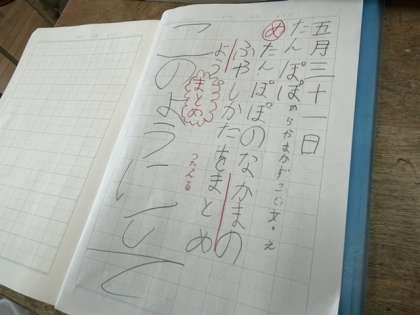 これらのノートを見て、「まとめの感想文」をしっかり仕上げる子どもたちでした。
