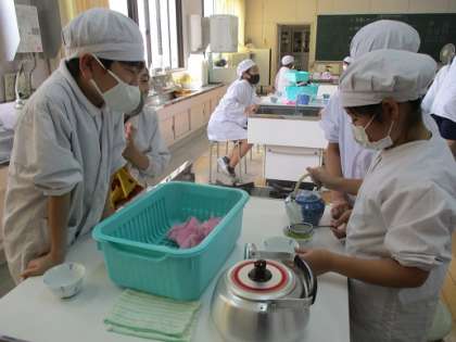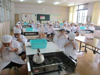 活動が始まると、グループに一人「小さなお母さん」が登場!!「次あれして」「〇〇さんはこれ」と的確な指示が入ります。普段の経験からか、やっぱり女の子の方がそんな姿になっていました。最後に、お茶を作り飲みました。給食と同じように話をしないで、全員前を向いて。団らんできないが少し寂しく感じました。