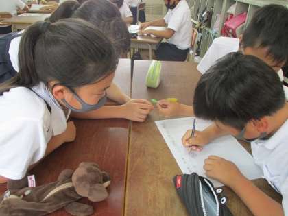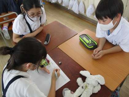 図工の「形が動く、絵が動く」のアイデアスケッチが終わりました。どんな内容にするかを話し合いました。どのグループも話し合いはスムーズに決まっていたと思います。次回から実物に作り、写真にしていきます。