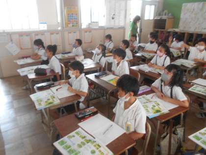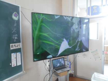 今回の理科は、モンシロチョウの成長について勉強しました。たまごから幼虫になり、さなぎになっていくところを動画を見て、分かったことや気づいたことを発表していきました。