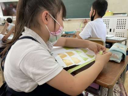 教科書付属の紙の「ものさし」で教室のものをはかりました。