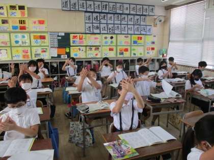今回の音楽は鑑賞を行いました。モーツァルトの「アイネクライネナハトムジーク」です。弦楽器の4種類の名前などをみんなで確認し、曲を聴きました。迫力と3つのリズムの違いに、すごいなーと感じている子が多かったです。しっかりと思ったことを理由と一緒に書けている子もいました。最後に5分余ったので、ビリーブの手話にも取り組みました。来週テストしようって言っています。自主額の時間でいっぱい練習してください。みんな結構上手だよ!!