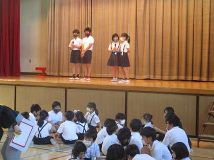 委員会活動が始まり、ほどんどの児童が1度は自分の仕事に取り組んだのではないでしょうか。「5年生は委員長や副委員長に積極的に立候補してくれてすごいね」「5年生しっかりと仕事してくれてるよ」とお褒めの言葉も届いています。今回は、集会委員会のでの仕事の様子です。舞台の上に立ち、堂々と話すことができていました。
