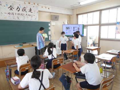 英語で日本のことを紹介する学習をしてきました。今日は学習してきたことを使ってラフィ先生に日本について紹介しました。どの班も上手に日本のことを紹介することができました。
