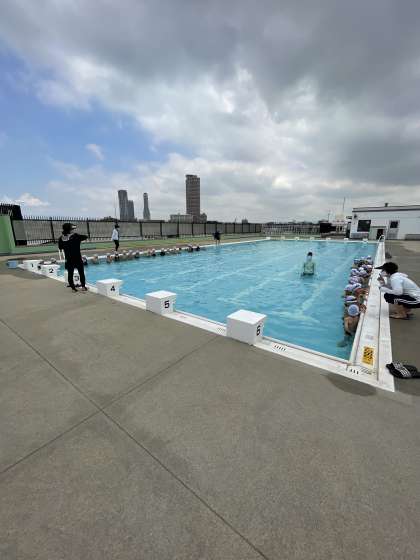 2時間目にプール開きをしました。初めてプールにいったので、並ぶ場所を決めました。準備運動をしてシャワーをしました。プールに入るときの約束を教えてもらって入水しました。今日はプールの中の周りを歩きました。次は水曜日になります。