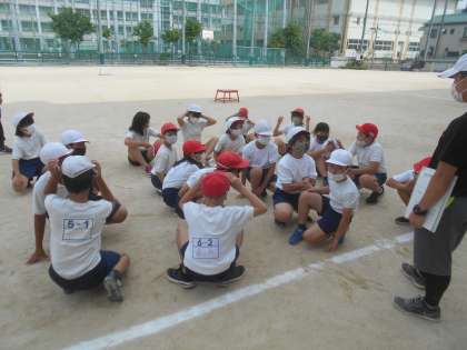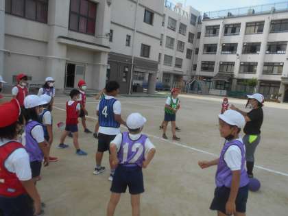 今回の活動は、「ポートボール」をしました。4年5年6年を混ぜてチームを作りました。みんなで協力して取り組めるようにドリブルを制限しました。試合で勝つためにパスをつないでいました。次回も引き続きポートボールをする予定です。
