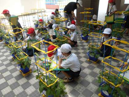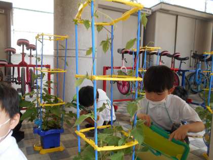 つるがとても伸びました。そしてつぼみも出てきました。よく見て描き、触ってみた感想も書きました。つぼみはこれからどうなっていくのでしょうね。水やりの時によく見ましょう。