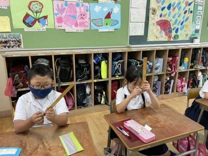 30cmの竹のものさしを使って盛り上がっていました。