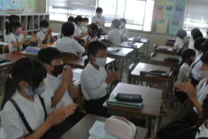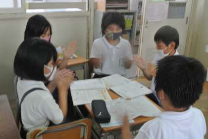 音楽の学習では、「楽しいマーチ」のリズム演奏を発表する日です。