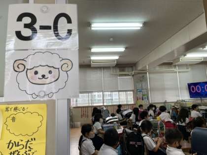 教頭先生の放送を聞き、すぐに地域子ども会の教室に集まり、人数確認して集団下校しました。
