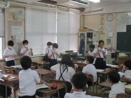 「ビリーブ」のテストを行いました。リズムに合わせて歌を口ずさみ、手話をします。みんなとっても上手でした。見ないでできる子も多かったです。次回は合奏にチャレンジしましょう。