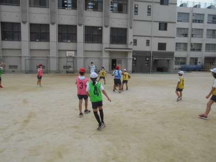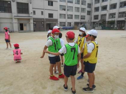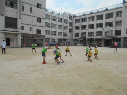 今回もポートボールをしました。チームを組みなおして、新しいチームで試合をしました。ドリブルはほとんど禁止にしたので、パスをつないでゴールを決めていきました。6年生がチームの子にたくさん声をかける姿がたくさんみられました。また、パスをもらえるように空いているスペースに走りこむ人も増えてきました。来週もたのしみです!