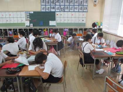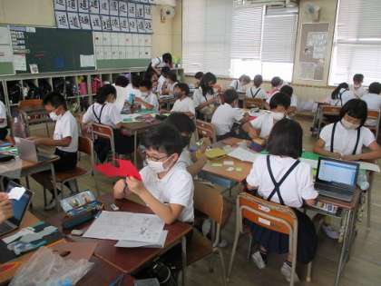 「形が動く・絵が動く」の作品作りも折り返しです。作品に利用するものが出来上がり、少しずつ写真を撮るグループが出てきました。目標は8場面、写真50枚です!!「絵だけど、動いて見える」そんな作品が楽しみです。