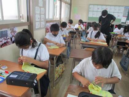 家庭科も「なみぬい」「本返しぬい」「半返しぬい」の練習をしています。間に合わなかった子も、家で続きしてきたいという子が増えてきました。来週で基礎的な作業の練習はおしまいです。