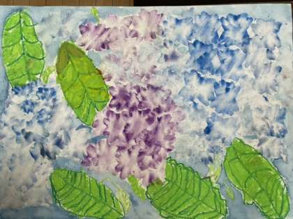 クレパスも絵の具も素敵に描けています。