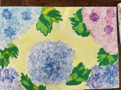 2年1組の「あじさいの世界」が完成しました。