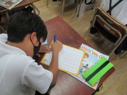 unit3の総復習をしました。音楽にのせて、単語の発音を繰り返すという活動を子どもたちが先生になって行っています。最初は難しかったcalligraphyやscienceも、言えるようになってきました。ゲームを通して書くことにも、段々慣れてきました。What do you have on Monday? What subjects do you like? ----もうフレーズはすべて覚えましたか?また復習してくださいね