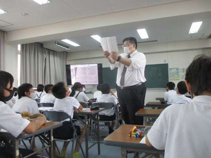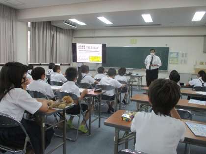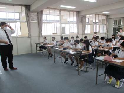 読売新聞の方に来ていただきました。1時間目は、「新聞記者の仕事」「新聞ができるまで」のお話をしていただきました。最初にメモの取り方を教えていただき「今日の学習でも気になったことはどんどんメモしてください」と言われ、みんな一生懸命メモを取っていました。きれいに整理しながら、何ページもメモを取っている子もいてびっくりしました。みんな集中して話を聞くことができていました。話を聞く姿勢に成長を感じます。