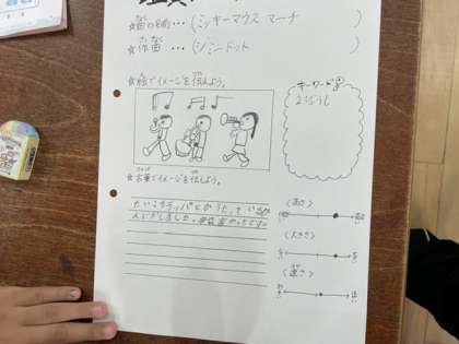 「ミッキーマウスマーチ」を聴いて絵を文章だけでなくイメージで伝える学習をしました。