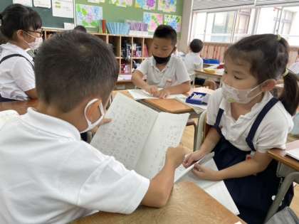 みんな「はじめに」「つぎに」「さいごに」を使い、上手に説明文が書けていました。