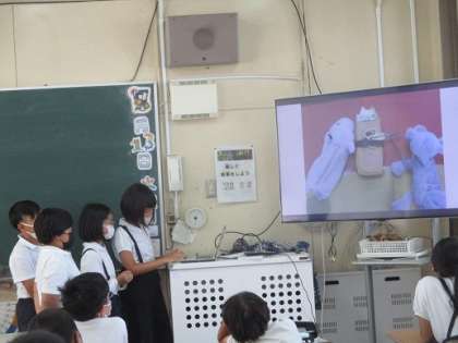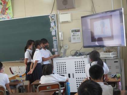 「形が動く、絵が動く」の作品の発表を行いました。それぞれのグループに工夫が見られました。動いて見せた時に、笑いが出たり、驚きの声が出たりと、みんなの反応もおもしろかったです。