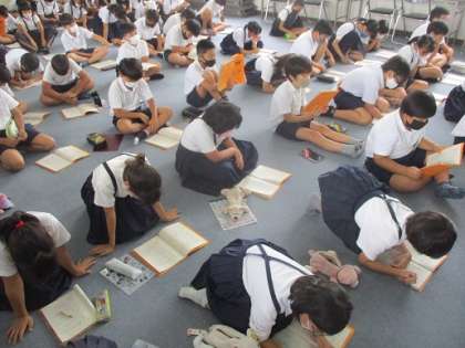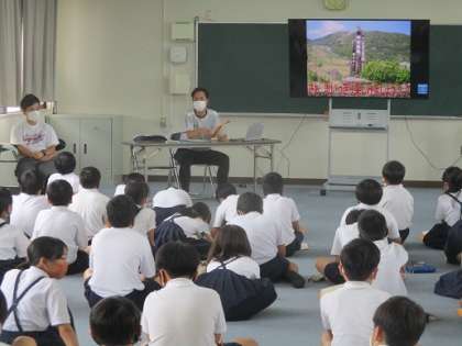 林間学習に向けて、しおりを配り、3日間のお話がありました。写真が出て切るたびに「おーっ!!」っと歓声がわいていました。みんなとっても楽しみにしているみたいです。