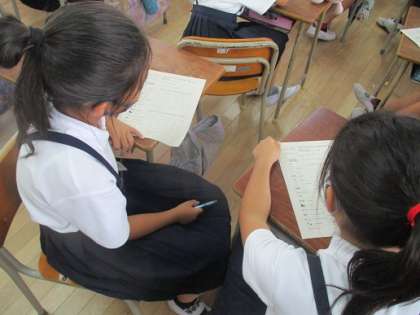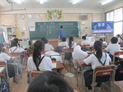 一学期の最後の外国語の授業でした。みんなで〇×ゲームを応用した英語の活動を行いました。難しいルールでしたが、やっているうちに理解した様子でした。一学期を通して、様々な単語やフレーズを学習しましたね。積極的にそれらを活用しようとする姿も見られます。2学期からも、楽しく英語を学んでいきましょう!
