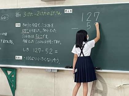 一の位、十の位と位を考えて筆算をかくことができていました。