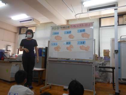 その後手洗いの仕方について確認したので、家庭のほうでも様子を見てください。