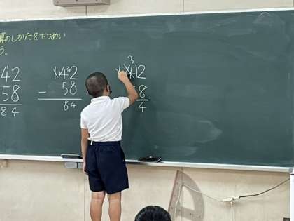 2年2組は繰り下がりのあるひき算の筆算の学習をしています。