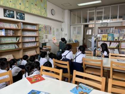 図書の時間には学校図書館補助員の小澤先生に読み聞かせをしていただいています。