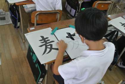 習字の学習「麦」 4年生