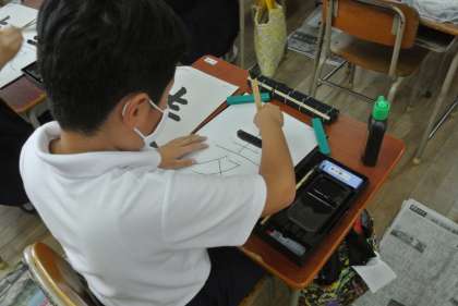 子どもたちは、左はらいに気を付けて、集中して書いていました。