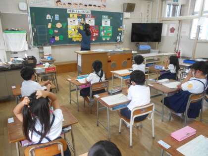 好き嫌いをしないで食べようという内容の授業をしました。3つの色の食べ物をバランスよく食べることが体に良いことを知りました。給食で苦手なナスやピーマンがでても健康のために食べようという感想を持つことができました。