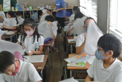 子どもたちは、手で空気をつかもうとします。