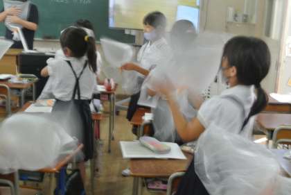 そこで、今回袋の中に空気を閉じ込めて、空気はどんなものかな〜と触って確かめる学習をしました。