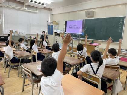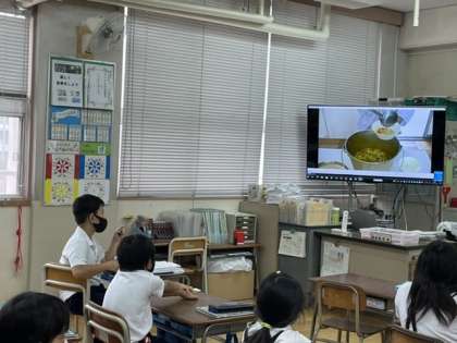 給食の見本を見ること、グラタンやスープの上手な配膳の仕方などクイズ形式で楽しく学ぶことができました。